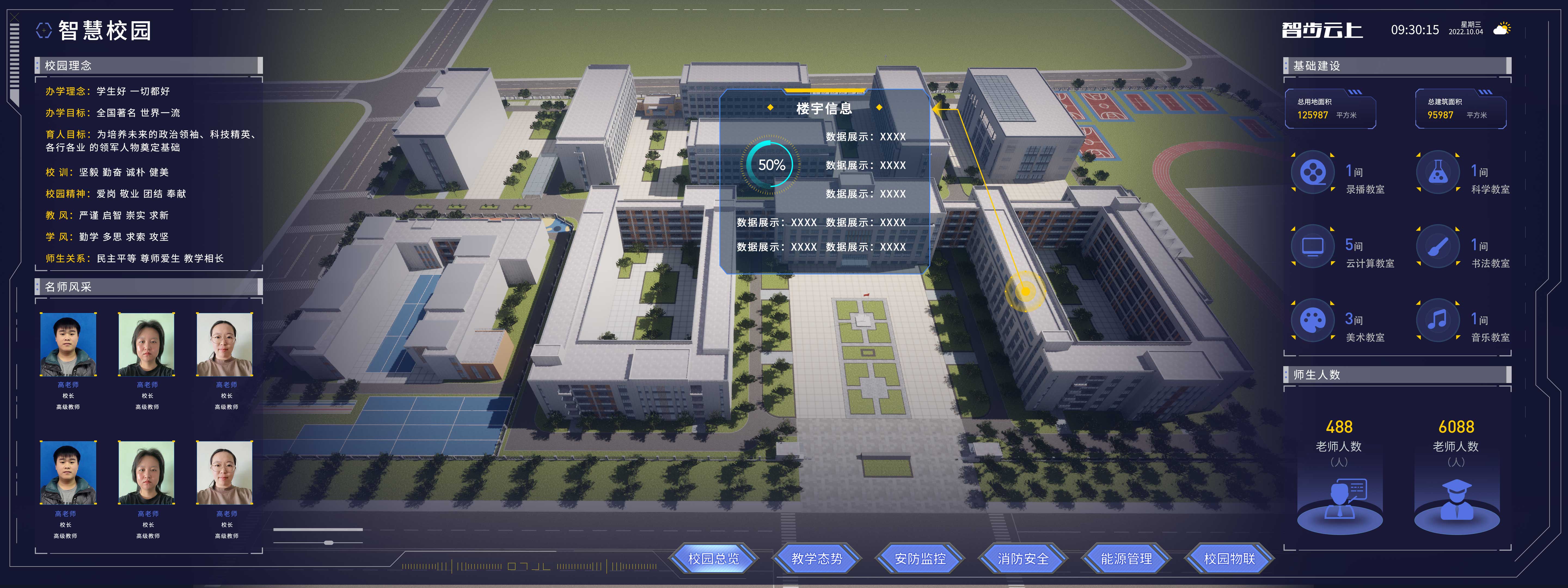 基于智慧校園可視化平臺主程框架,設計并開發實現UI層級的調度關系以及各個場景模塊的輸入與輸出。